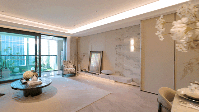 徐汇滨江!客堂南向面宽跨越5.2米,石材布景板的金属格适用性很强。(来历于:上不雅旧事)